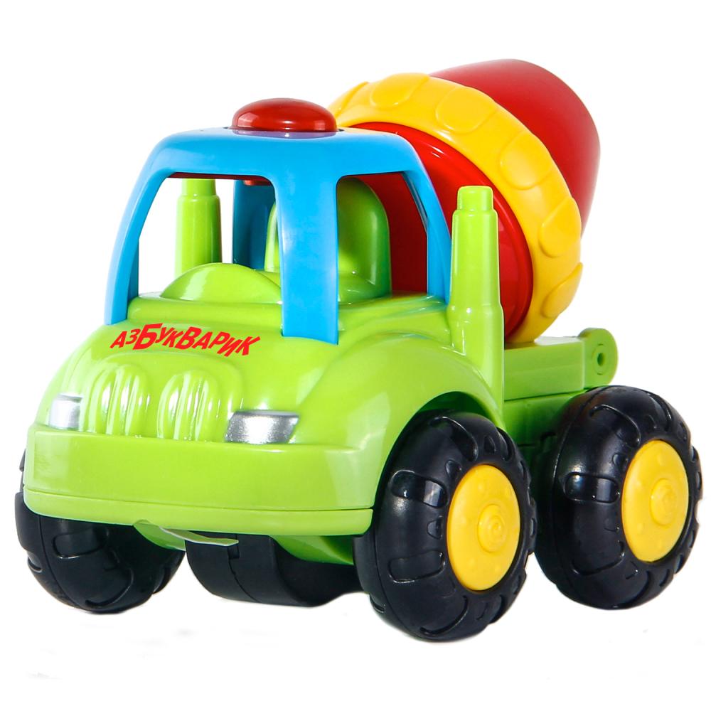 Забавная разноцветная бетономешалка ездит, мигает огоньками, проигрывает веселую песенку и задорно «бибикает». Музыка и световые эффекты включаются при движении, а слова песенки помогут крохе быстро выучить счёт до пяти. Поставьте игрушку на пол, включите, и ребенок будет с большим удовольствием ползать за веселой машинкой, которая ездит благодаря работе инерционного механизма. У бетономешалки есть подвижная деталь – барабан. Малыш это обязательно оценит!
