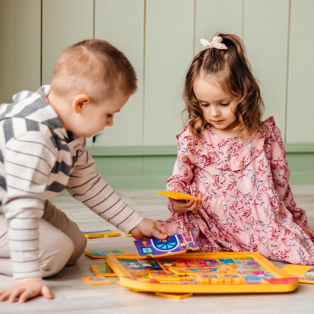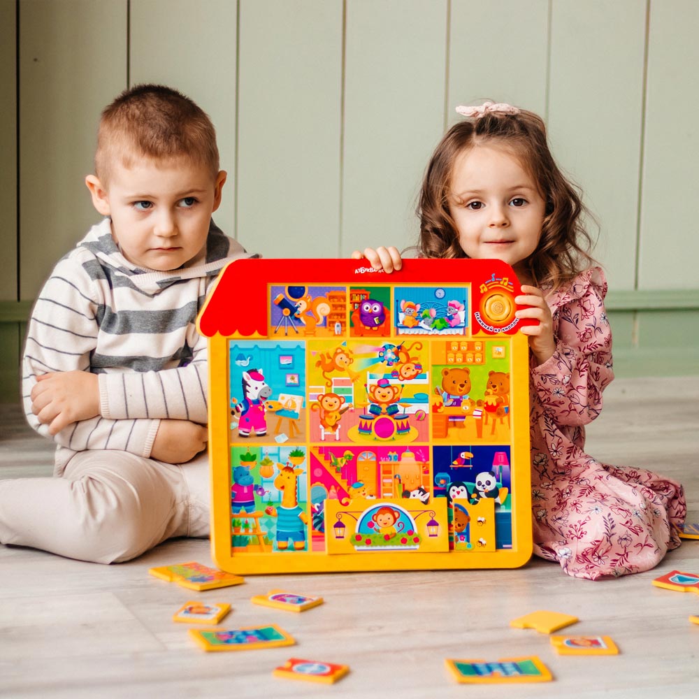 «Домик друзей» – это развивающий пазл-вкладыш для малышей. Ребенку нужно помочь зверятам построить домик: определить, где будут окошки, где дверь, а где – сад! Домик можно собирать каждый раз по-разному: все детали совместимы друг с другом и по форме, и по дизайну. Подобные занятия развивают у ребенка мелкую моторику, логику, воображение, а также формируют креативный подход и нестандартное мышление.