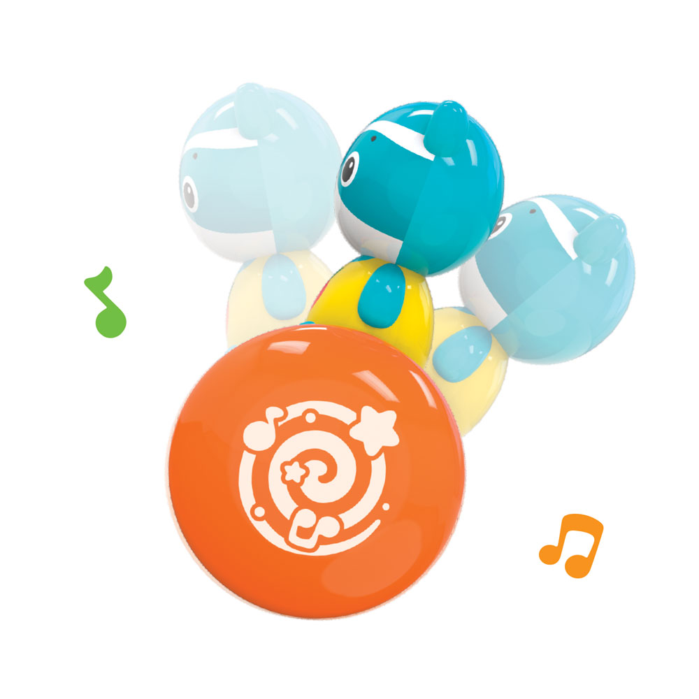 Этот забавный енотик на колёсиках такой быстрый! Попробуй догони! Катай игрушку – слушай песенки ("Чижик-пыжик", "Догони") и весёлые мелодии с забавными звуками. Яркие огоньки мигают под музыку и поднимают настроение. А еще с енотиком можно играть как с неваляшкой. Такая игрушка не только развлекает малыша, но и помогает в развитии двигательной активности, слухового восприятия, музыкальных способностей.