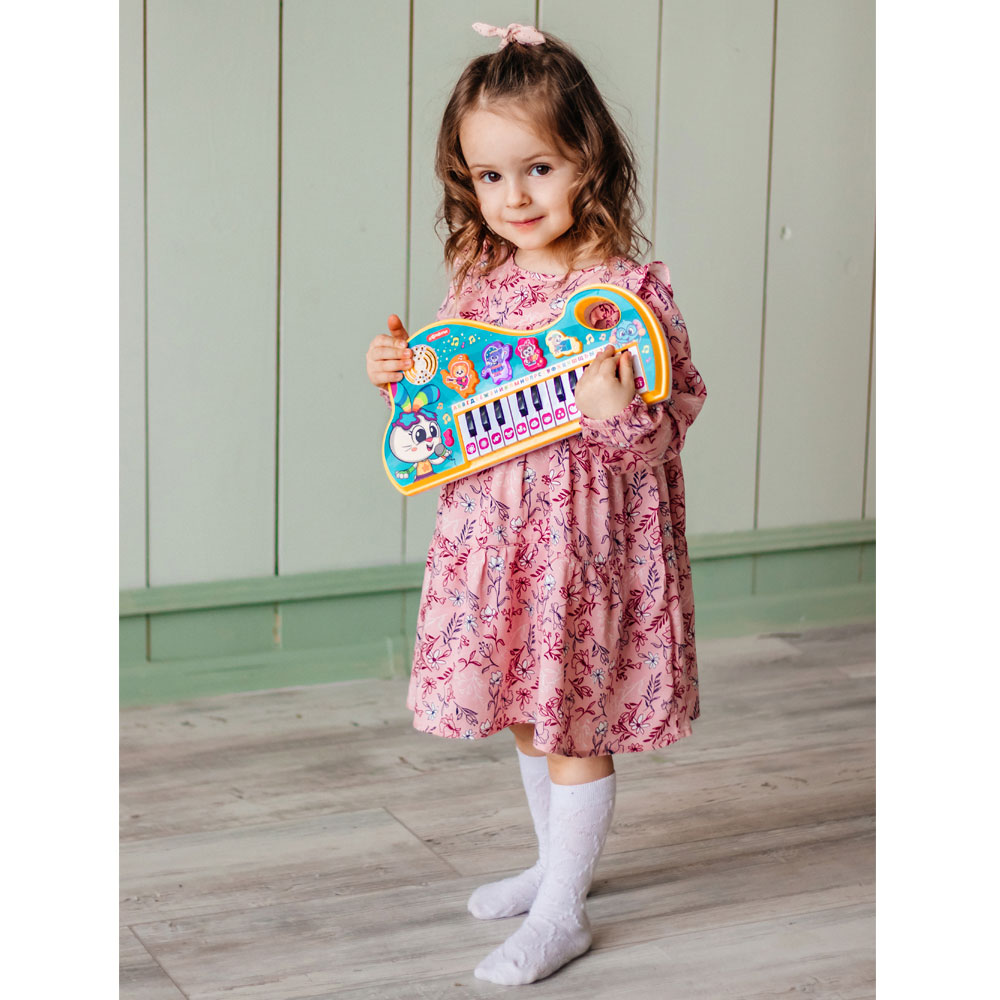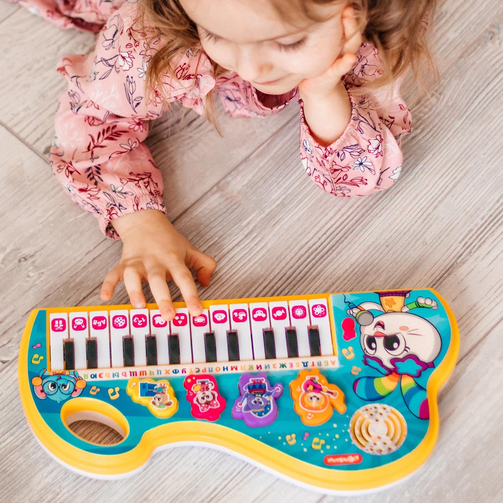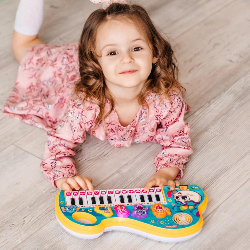 Устрой музыкальное шоу с веселыми друзьями Фантиками: львенком Лёвой, слоником Слоняшей, зайкой Заей, обезьянкой Ириской, щенком Тимкой и котенком Сплюшиком! Выбери один из трех режимов: «Концерт», «Оркестр» или «Волшебное пианино». Играй и веселись! Нажимай на кнопочки – знакомься с музыкальными инструментами, слушай более 20 песенок и мелодий («Лето», «Стало солнышко теплей», «Друзья», «Прятки», «Весёлые противоположности», «Дождик», «Танец зверят», «Формы разные на свете», «Ладушки», «Начинаем счёт подряд», «Божья коровка», «Песенка про алфавит», «Пляшут весело детишки», «Бум-Бум», «Зарядка», «Барбарики» и др.). Играй на клавишах пианино – запоминай ноты и развивай музыкальный слух. А в режиме «Волшебное пианино» каждый ребенок сможет сам сыграть 5 известных мелодий («Собачий вальс», «Как у наших у ворот», «Каравай», «Два весёлых гуся», «Серенький козлик»).
