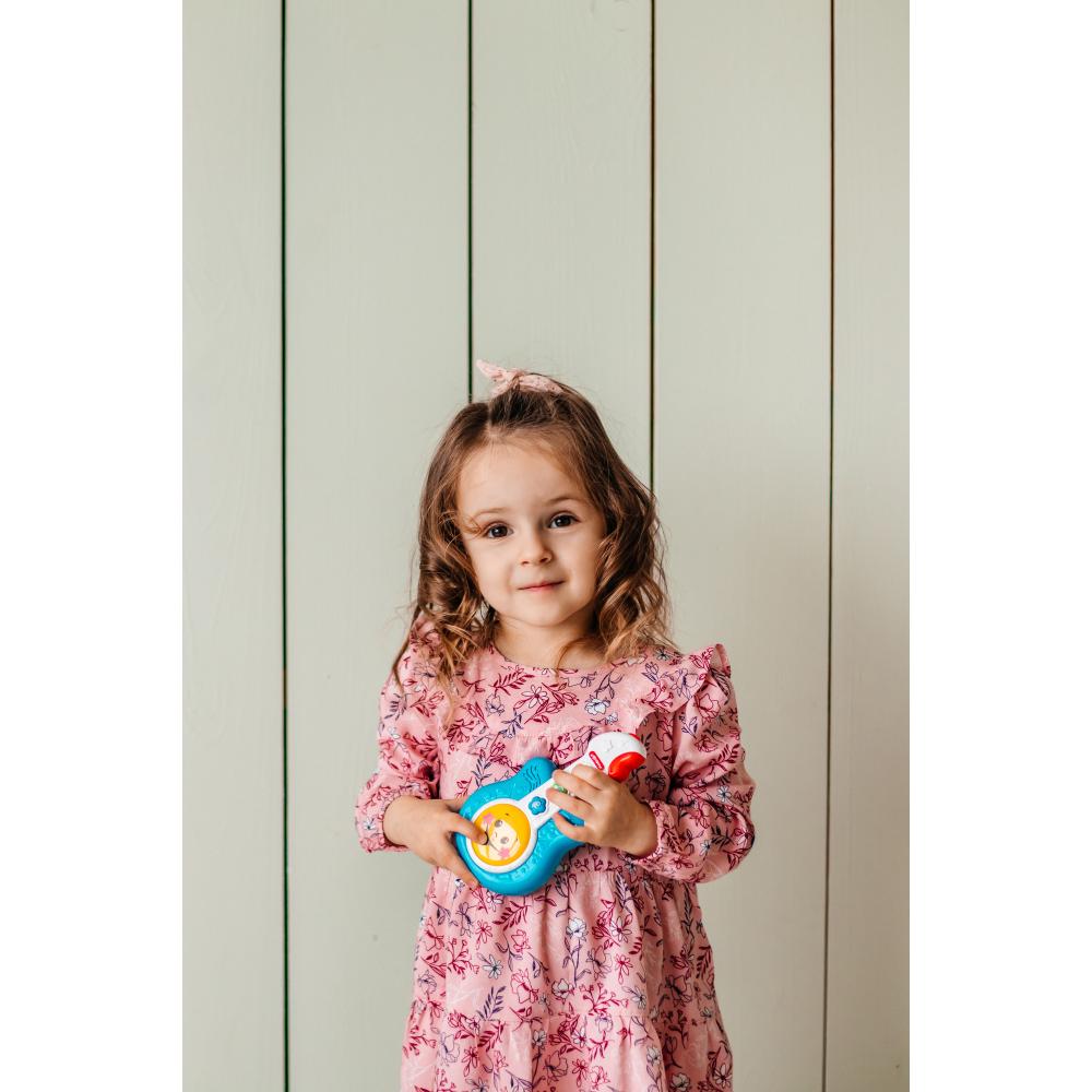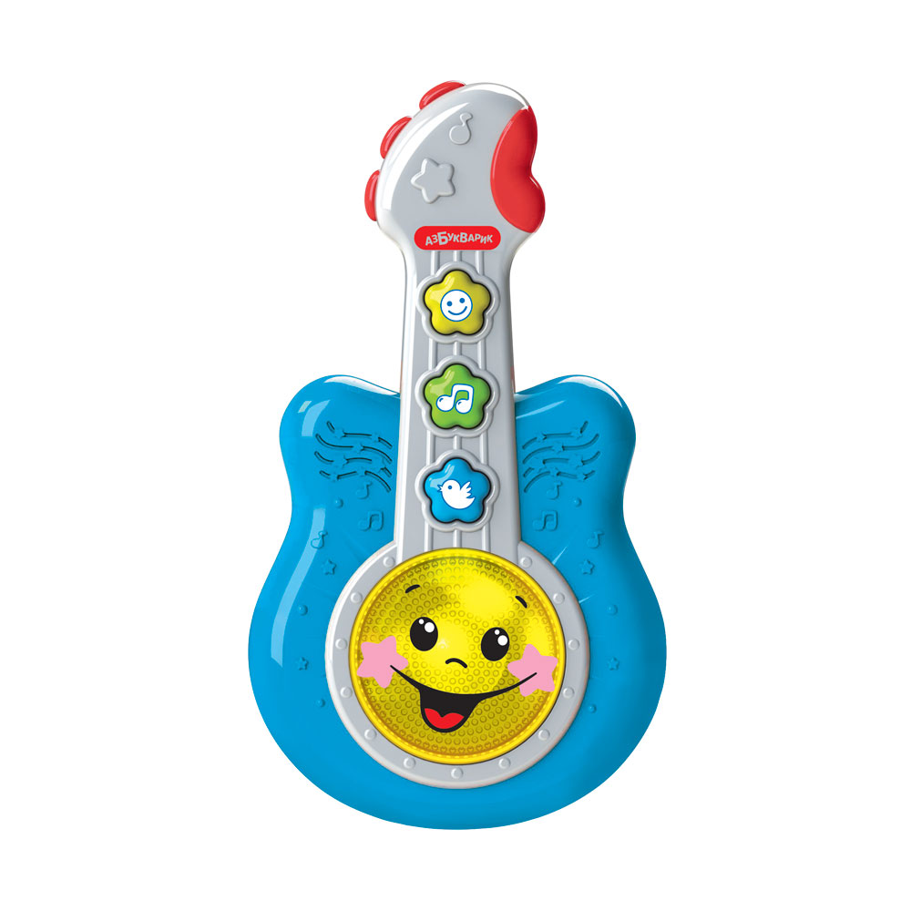 Яркая игрушечная гитара подарит малышу отличное настроение и поможет ему раскрыть музыкальный талант! Нажимай на кнопочки – слушай 25 песенок, мелодий и звуков («Какой чудесный день!», «Ничего на свете лучше нету», «Чунга-чанга», «Весёлая карусель», «Песня Львёнка и Черепахи», «По дороге с облаками», «Друзья», «Песенка про кузнечика» и др.)
