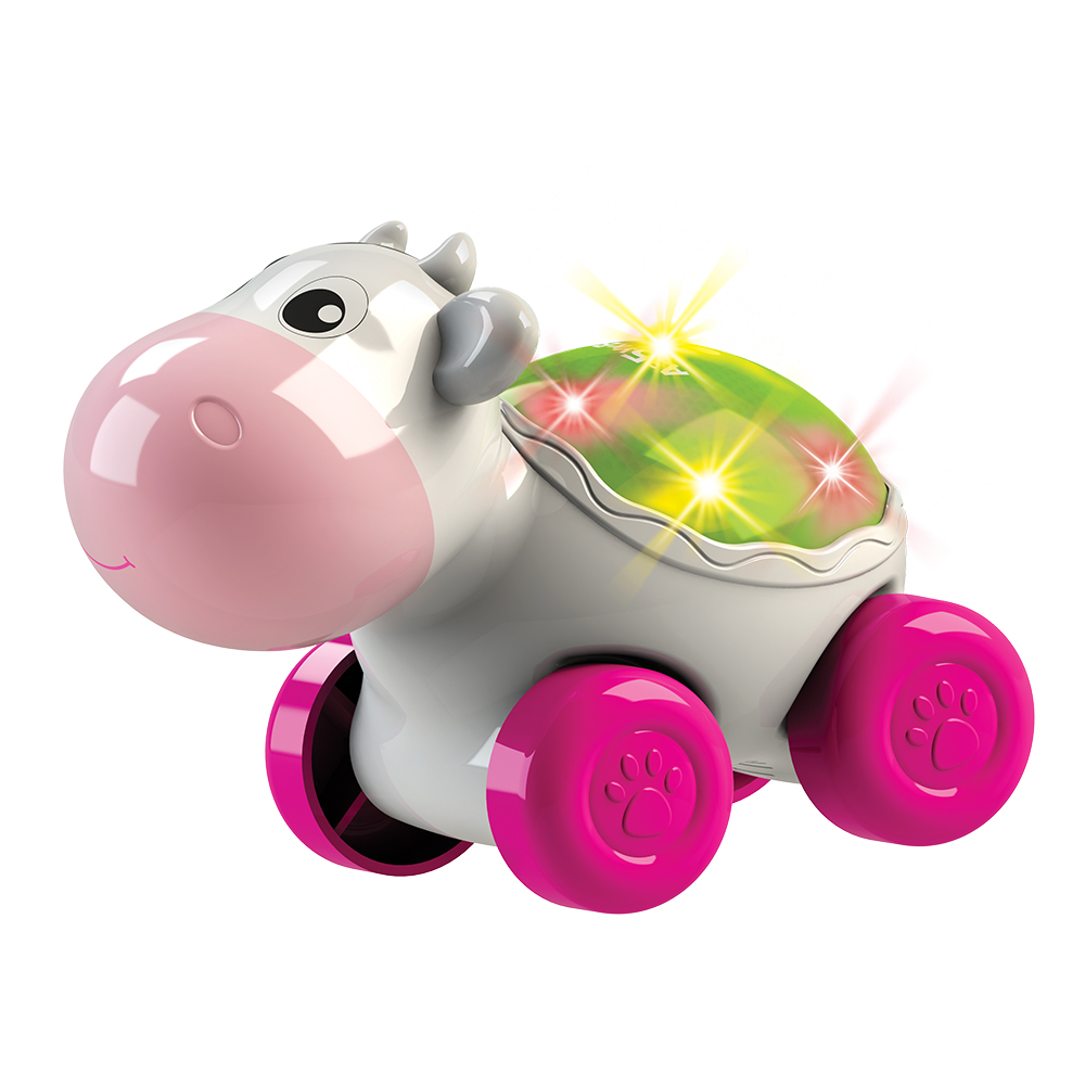 Эту милую коровку не просто так зовут Светяшкой! Она вся светится разноцветными огоньками – малышу нужно только нажать ладошкой на спинку игрушки. Коровка Светяшка – музыкальная: она поет 6 веселых песенок и мелодий («Песенка про ферму», «Стало солнышко теплей», «Топ-топ, топотушки», «Весёлая карусель» «Немецкая полька», «Чижик-пыжик»). А еще у коровки есть колесики, и ребенок сможет покатать ее.