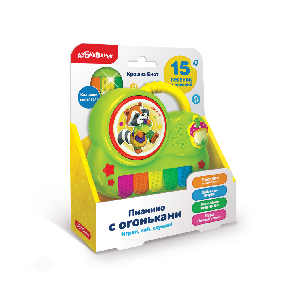 С этим чудо-пианино каждый ребенок почувствует себя настоящим музыкантом! Нажимая на разноцветные клавиши, малыш послушает веселые песенки и мелодии ("Антошка", "Улыбка", "Добрый жук", "Танец маленьких утят", "Чижик-пыжик" и другие), и даже сыграет сам 5 популярных мелодий. А до чего же интересно ловить на клавишах огоньки! Эта игра не только развлекает, но и развивает внимание, скорость реакции, мышление.