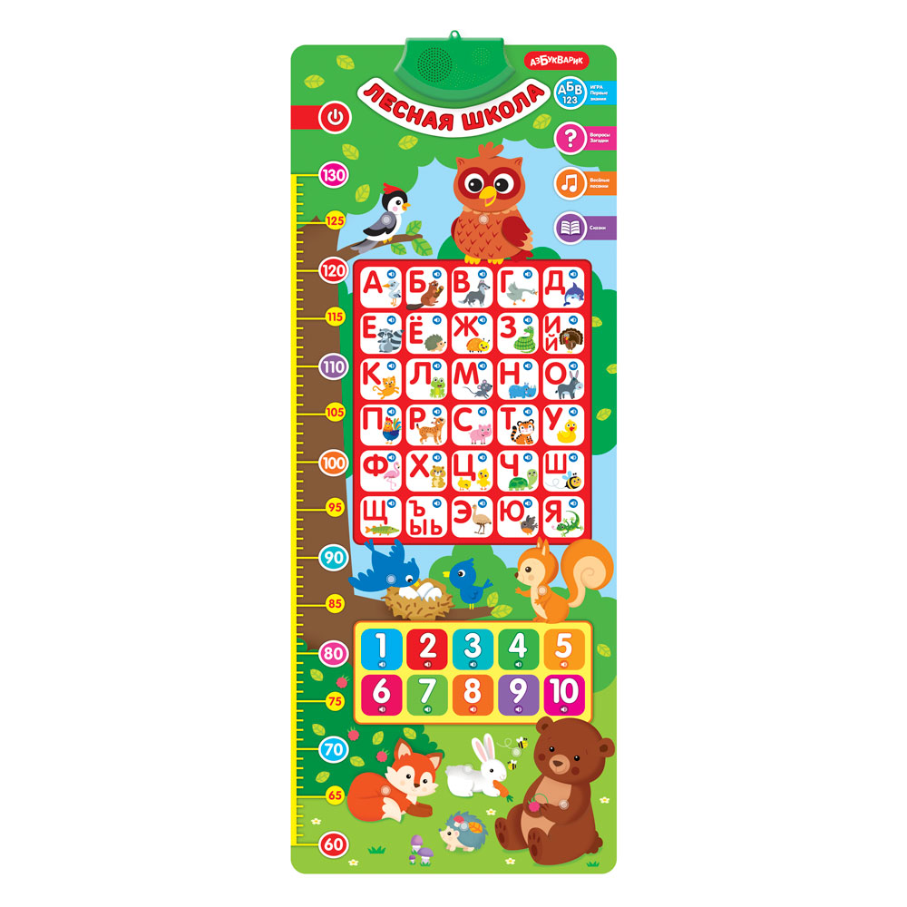 Обучающий плакат-ростомер поможет и рост измерить, и выучить буквы с цифрами! Нажимай на картинки – играй и учись, слушай любимые потешки и народные сказки («Заюшкина избушка», «Три медведя», «Лисичка-сестричка и серый волк»). А ещё ты сможешь поиграть в увлекательные игры: «Первые знания», «Угадайка», «Загадки».