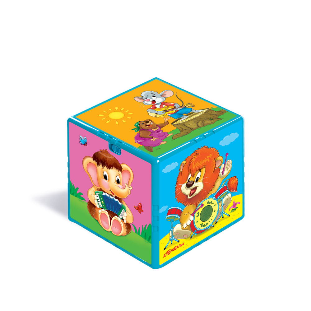 6 активных граней, 20 звуков и голосов, 13 песенок и 12 мелодий, 6 мультяшек и 6 музыкальных инструментов – всё это ждёт малышей в новом развивающем кубике.