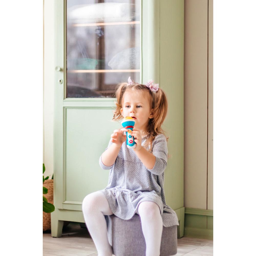 Во время звучания песенок и мелодий мигает огонек. Слушай песенки, пой в микрофончик – стань звездой сцены!