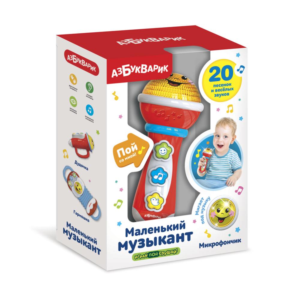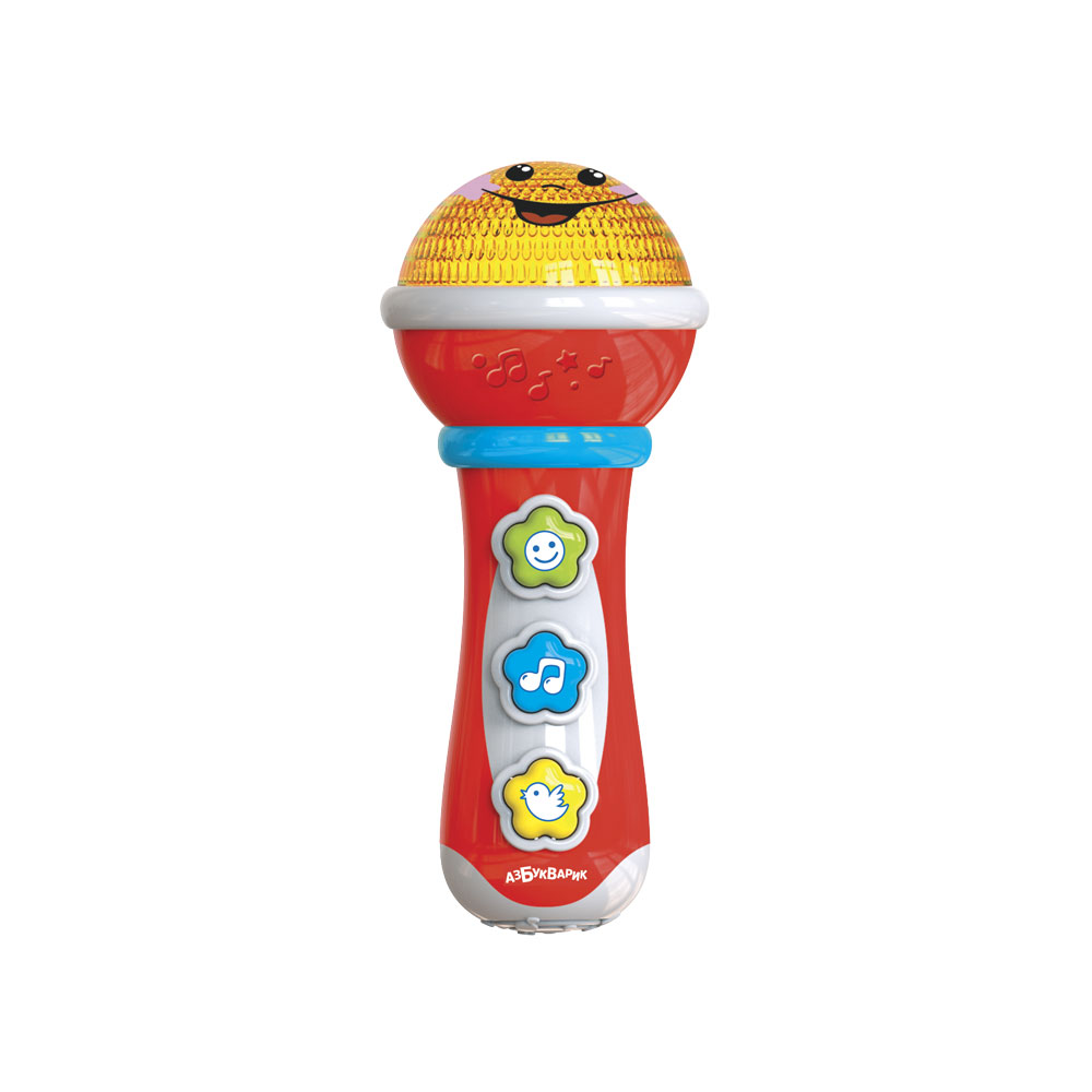 Яркий игрушечный микрофончик подарит малышу отличное настроение и поможет ему раскрыть музыкальный талант! Нажимай на кнопочки – слушай 20 песенок и веселых звуков («Песенка Мамонтёнка», «Здравствуй, детство!», «Четыре таракана и сверчок», «Расскажи, Снегурочка», «Чуку-чу», «С днем рожденья», «Калинка», «Заинька, попляши!», «Петушок», «Топ-топ, топотушки» и др.).