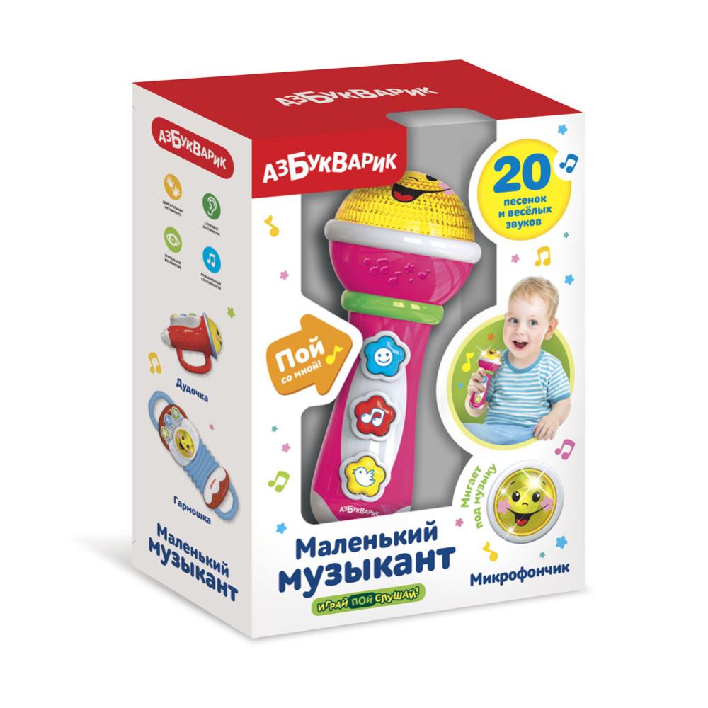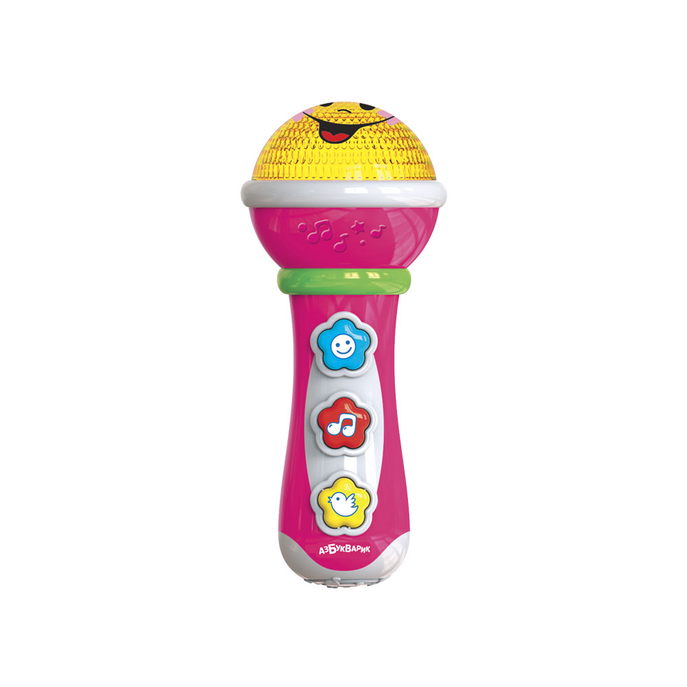 Яркий игрушечный микрофончик подарит малышу отличное настроение и поможет ему раскрыть музыкальный талант! Нажимай на кнопочки – слушай 20 песенок и веселых звуков («Песенка Мамонтёнка», «Здравствуй, детство!», «Четыре таракана и сверчок», «Расскажи, Снегурочка», «Чуку-чу», «С днем рожденья», «Калинка», «Заинька, попляши!», «Петушок», «Топ-топ, топотушки» и др.).