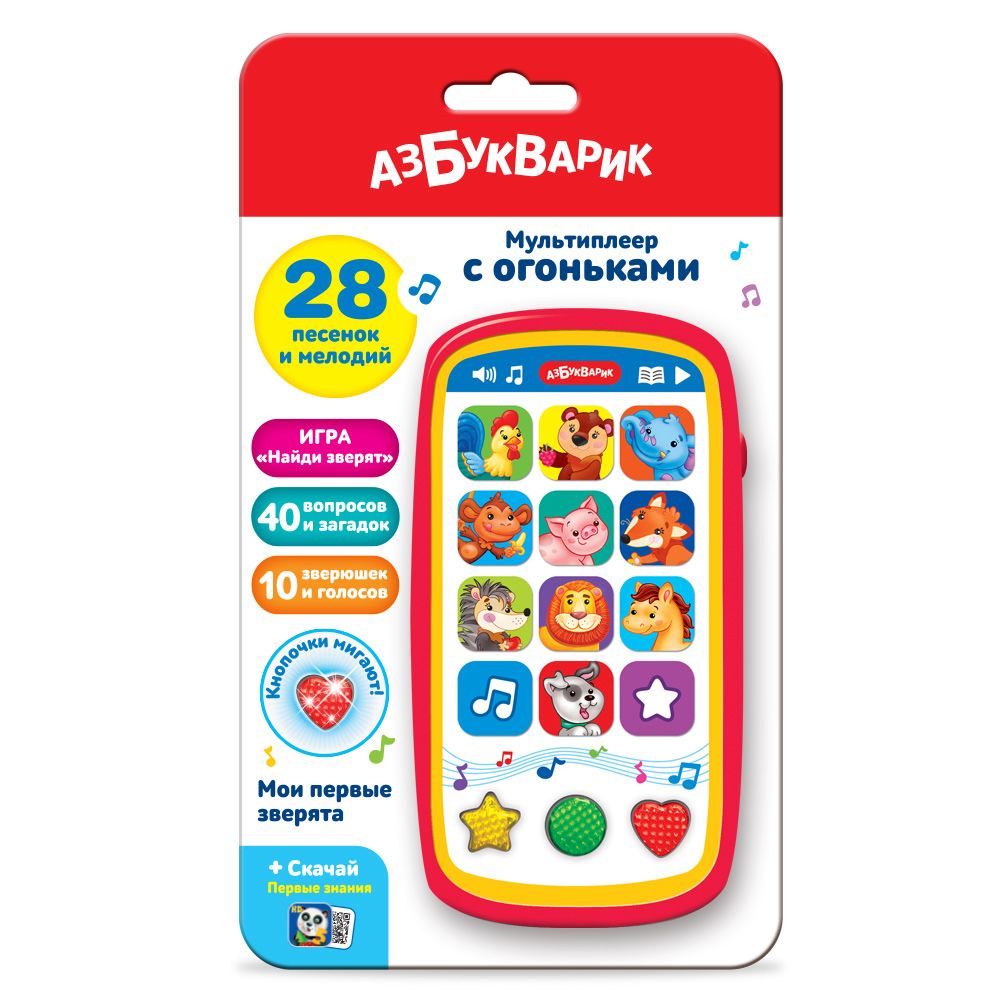 Мультиплеер "Мои первые зверята" отлично подойдёт для знакомства с животными: при нажатии на кнопочки с изображениями зверюшек можно послушать песенки о них и узнать, кто как говорит. Закрепить знания помогут весёлые загадки и увлекательная игра «Найди зверят»!