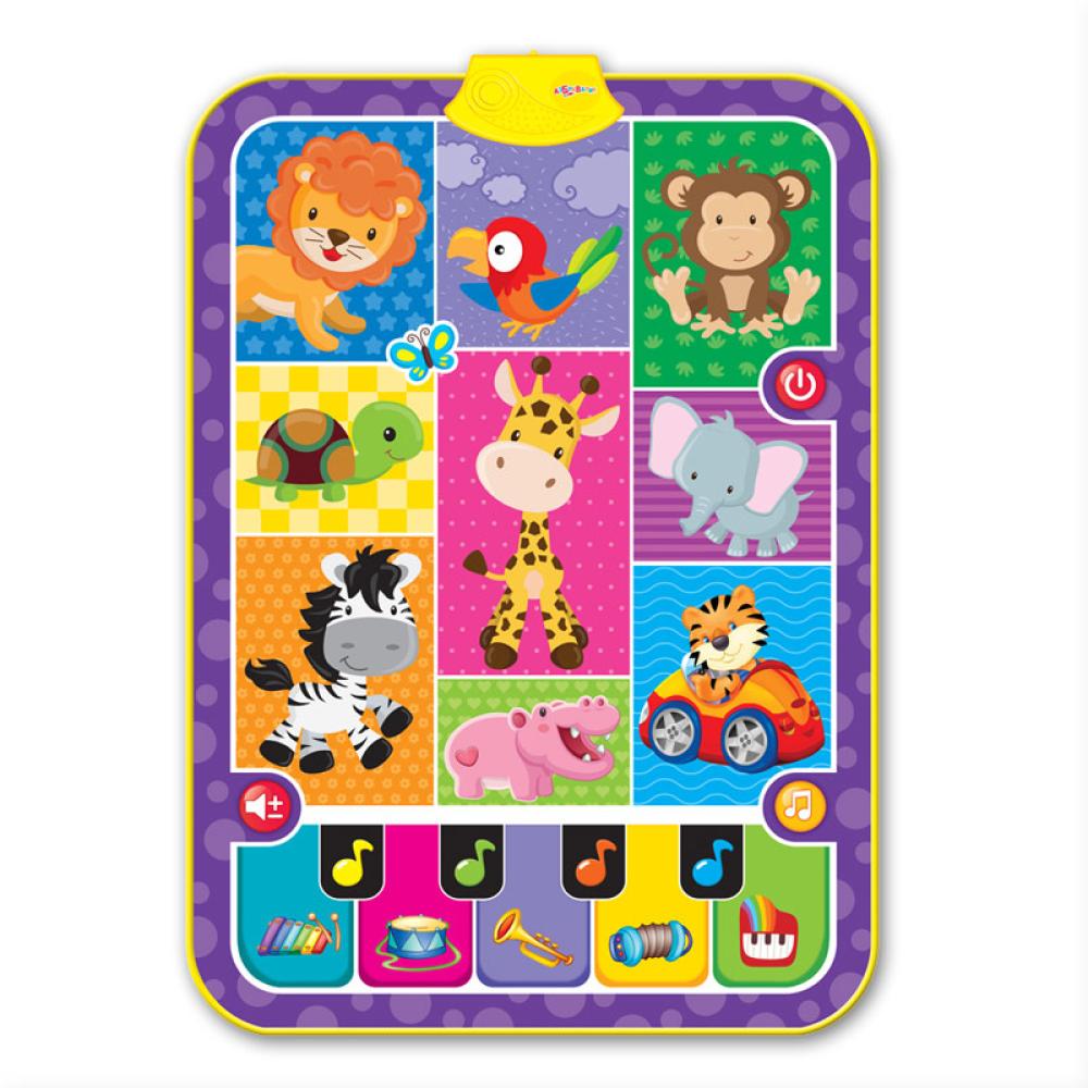 Этот суперковрик приведет малыша в восторг. Он такой большой, яркий и музыкальный! Нажимай на картинки - знакомься со зверятами и слушай песенки о них ("Лев", "Попугай", "Мартышка", "Черепаха", "Жираф", "Слон", "Зебра", "Бегемот", "Тигры", "Бабочка").