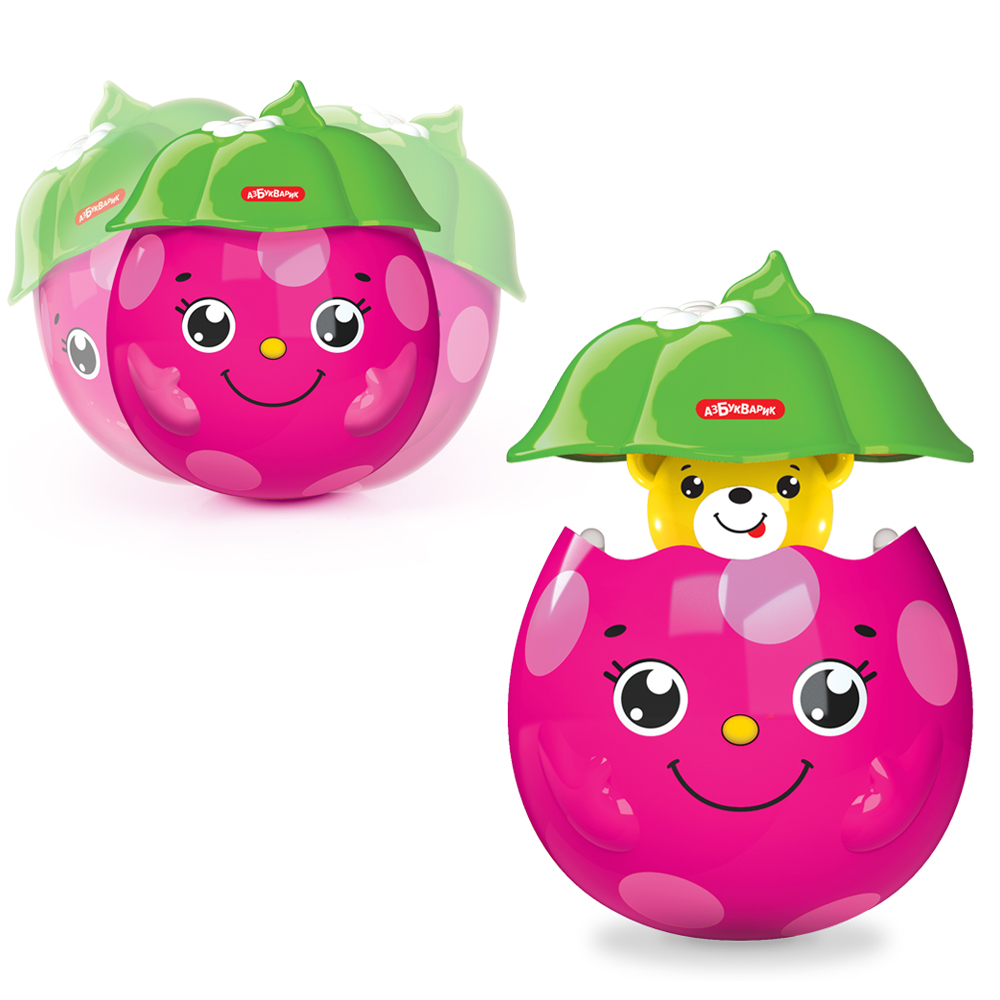 Игрушка-сюрприз порадует любого ребенка, особенно если этот сюрприз – музыкальный! Кто же прячется в большой малинке? Нажми скорее на носик-кнопочку! Ух ты – это мишка! Продолжай нажимать на кнопочку – мишка споет 10 песенок и мелодий («Друзья», «Песенка про счёт», «Весёлые противоположности», «Пляшут весело детишки», «Бум Бум», «Весёлая карусель», «Песенка про кузнечика» и др.). Чтобы мишка обратно спрятался в домик-малинку, нужно нажать на крышечку. А еще с малинкой можно играть как с неваляшкой – раскачивать ее в разные стороны!