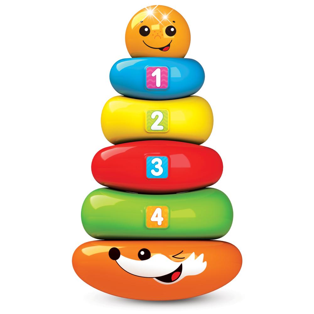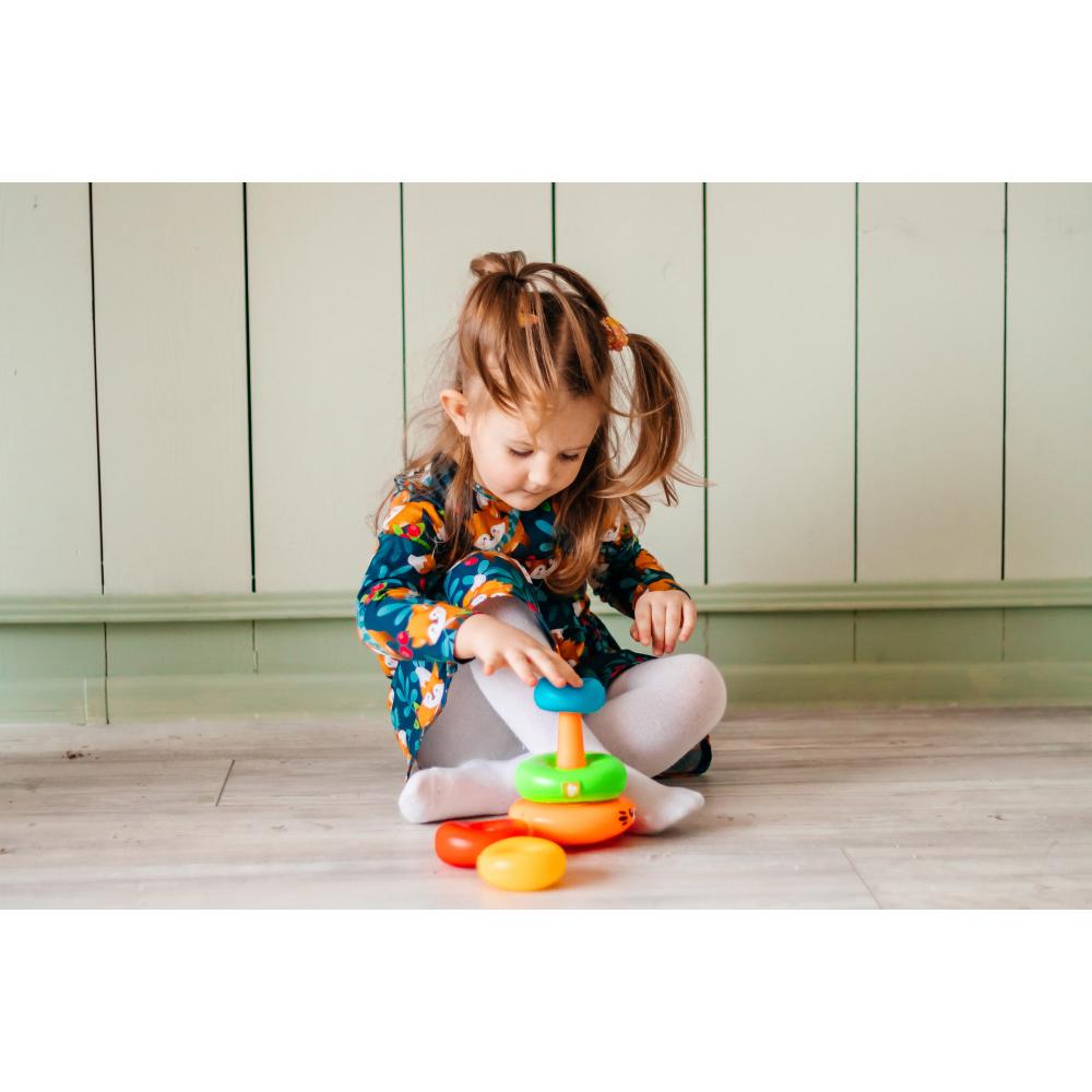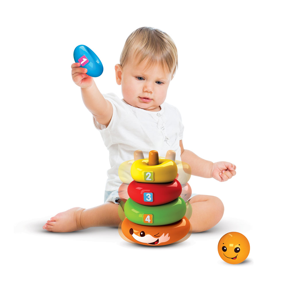 Игрушка отлично подходит для малышей от 1 года. Колечки разного цвета и размера развивают логическое мышление, песенки и звуки развивают слуховое восприятие, игры с мячиком и неваляшкой стимулируют двигательную активность и мелкую моторику.