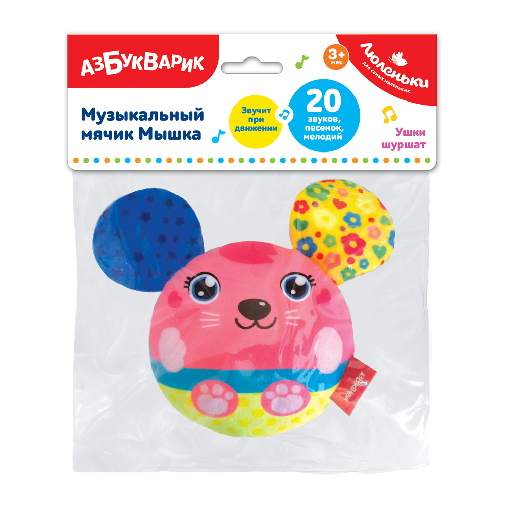 Плюшевый мячик в виде забавной мышки подарит малышу много радости! Он звучит при движении, а мышкины ушки весело шуршат. Подбрасывая мячик, ребенок будет слушать песенки и мелодии с веселыми звуками («Я малышка-мышка», «Прятки», «Чижик-пыжик» и др.).