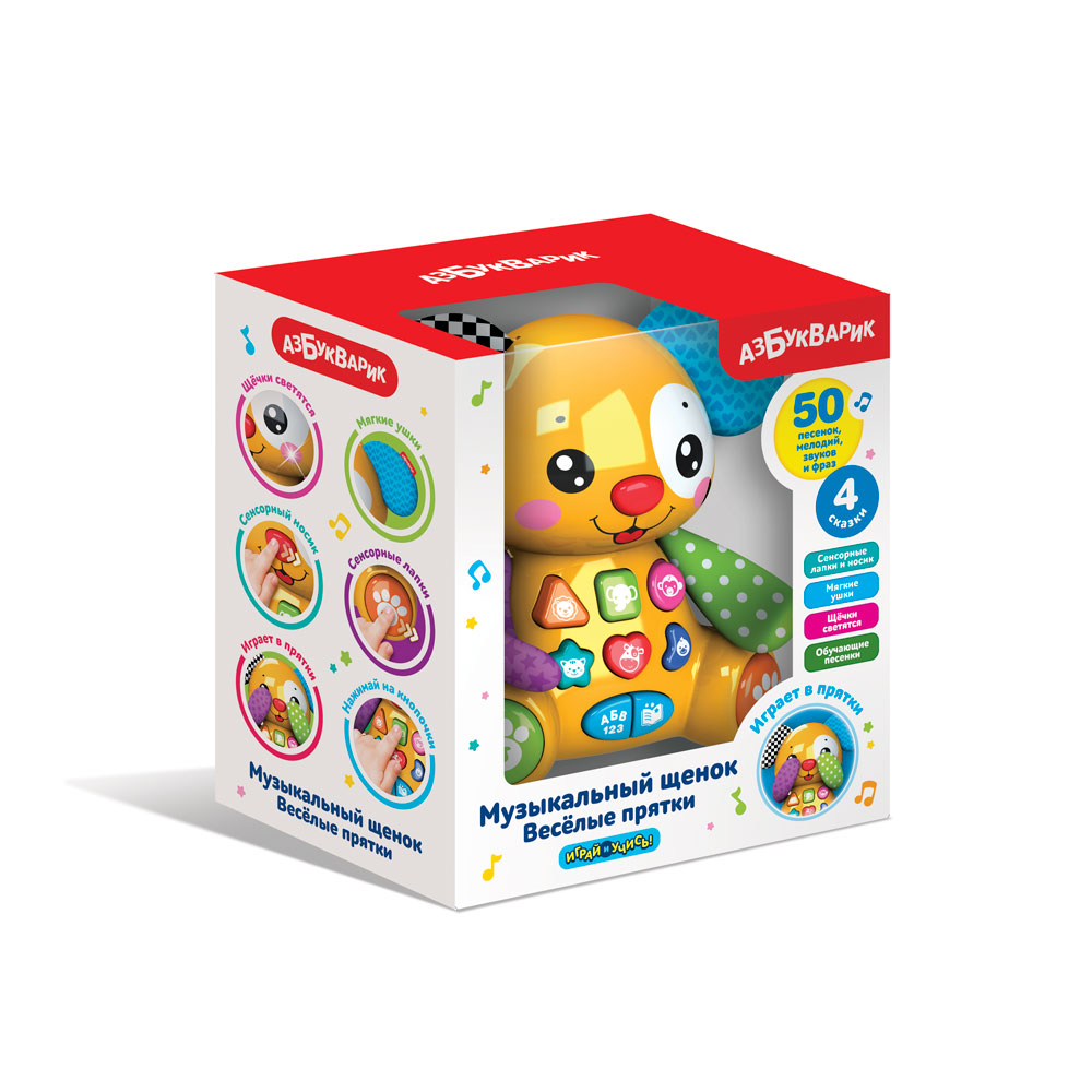 Этот необычный щенок станет любимым питомцем малыша и лучшим другом! Он говорит, поет, рассказывает сказки, а еще – играет в прятки!
