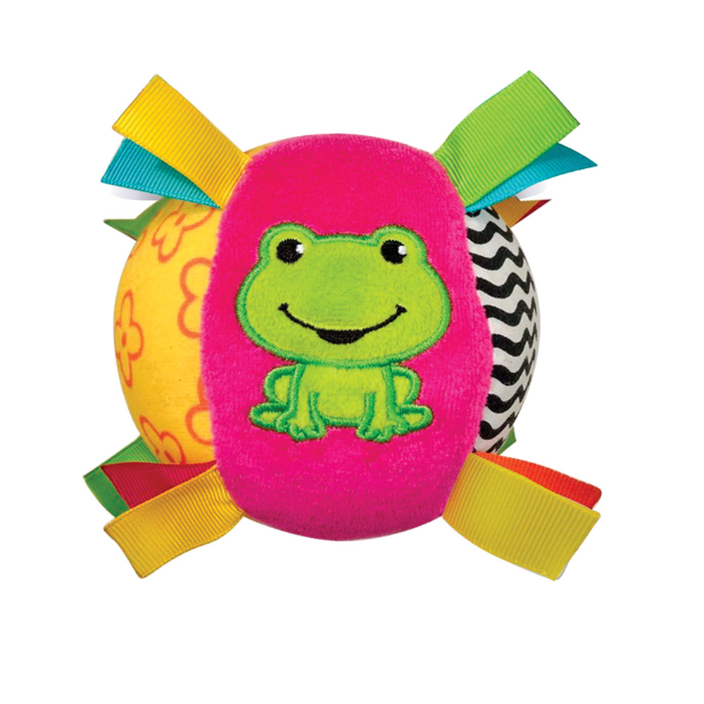 Этот веселый мячик – мягкий и музыкальный, да еще и с разноцветными ленточками! Игрушка отлично подходит для малышей от 3 месяцев, стимулирует двигательную активность, развивает тактильные ощущения и слуховое восприятие. Ребенок будет бросать мячик и слушать 5 песенок и мелодий («Ладушки», «Топ-топ, топотушки», «Чижик-пыжик», «Собачий вальс», «Немецкая полька»), а еще – забавные звуки.