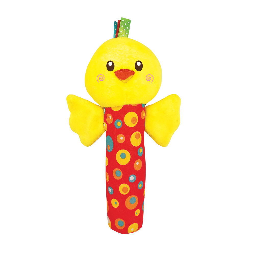 Развиваем малыша с пеленок! Оригинальная игрушка-пищалка в виде цыпленка способствует развитию зрительного и слухового восприятия, тактильных ощущений. Она и звенит, и пищит, и шуршит – к восторгу крохи! Разные фактуры тканей, из которых сделана игрушка, так приятно трогать пальчиками!