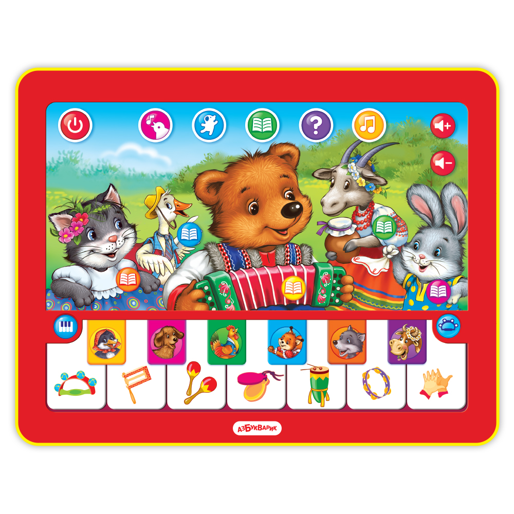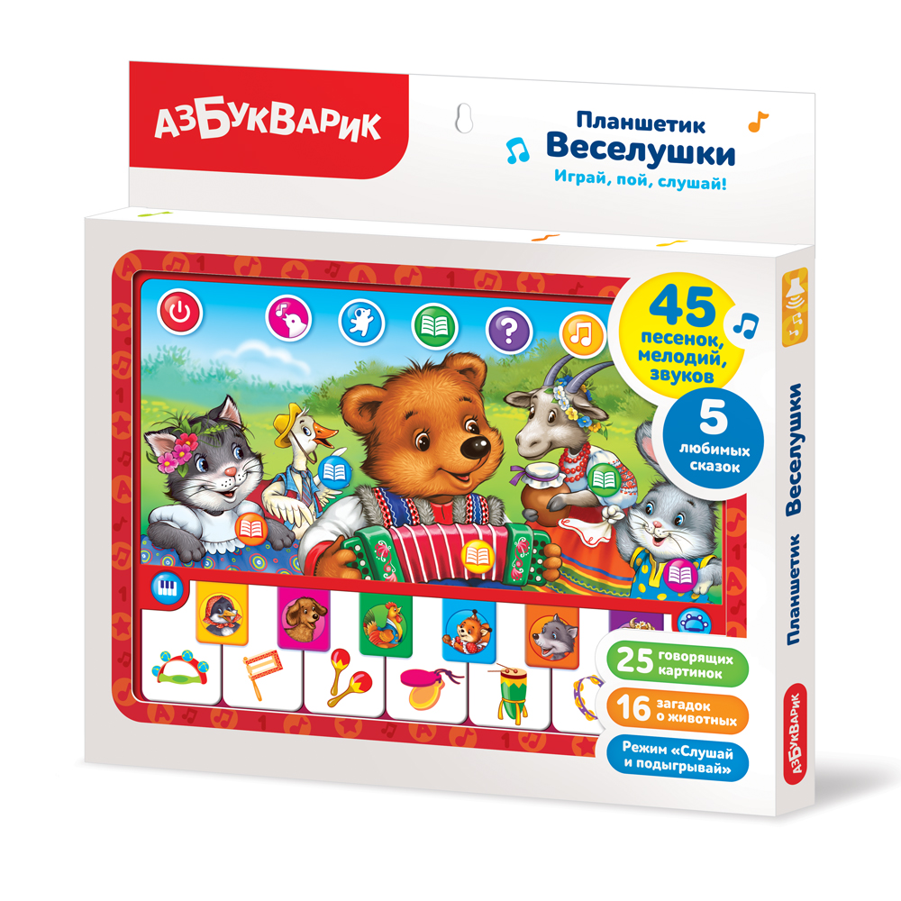 С новым музыкальным планшетиком скучать не придётся! «Веселушки» - это забавные говорящие зверюшки, любимые песенки и сказки ("Гуси-лебеди", "Маша и медведь","Волк и семеро козлят", "Заюшкина избушка", "Кот, петух и лиса"), игры и загадки!
