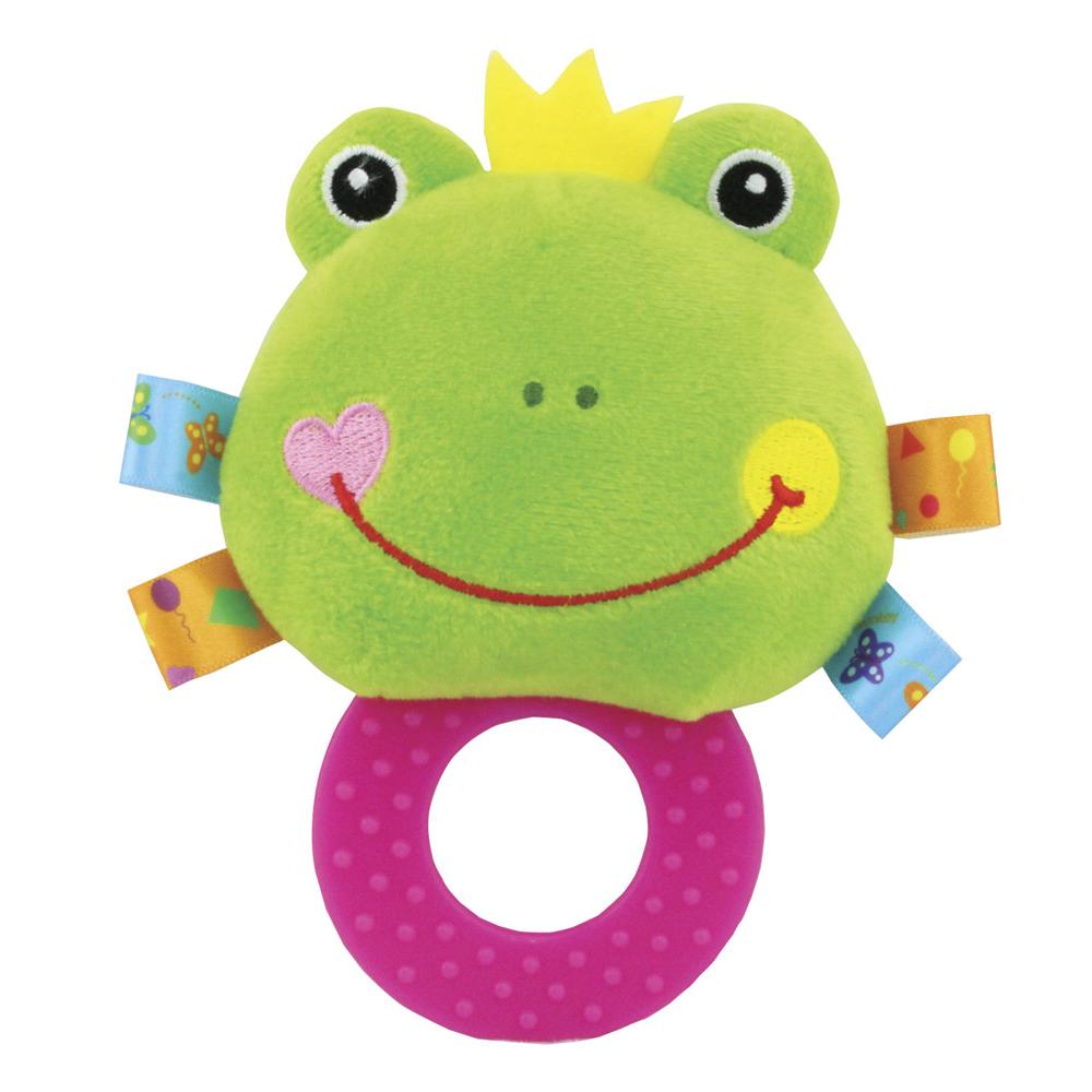 Погремушка для малыша с первых дней жизни! Ручки сами потянутся к яркому плюшевому лягушонку! Если потрясти, игрушка весело зазвенит, а если нажать на мордочку – запищит! Прорезыватель-колечко можно смело тянуть в рот – он поможет зубкам расти.