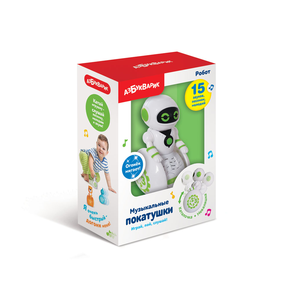 Теперь у малыша будет свой собственный робот. Совсем как настоящий, только маленький. Катай игрушку – слушай песенку, мелодию, много настоящих звуков робота. Он очень быстро катится – попробуй догони! А еще с роботом можно играть, как с неваляшкой.