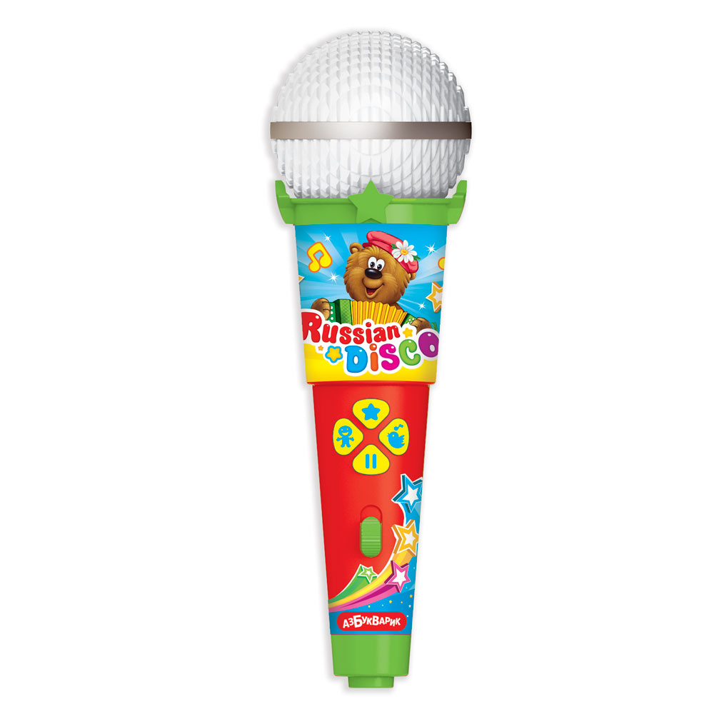 Этот удивительный микрофон превратит любой праздник в настоящее шоу! Он светится под музыку, как настоящий диско-шар! Слушай 15 детских хитов («Частушки Бабок-Ёжек», «Калинка», «Каравай», «Валенки» и др.), танцуй и подпевай любимым героям. Весёлое пение с микрофоном раскроет музыкальные и актёрские таланты малыша.