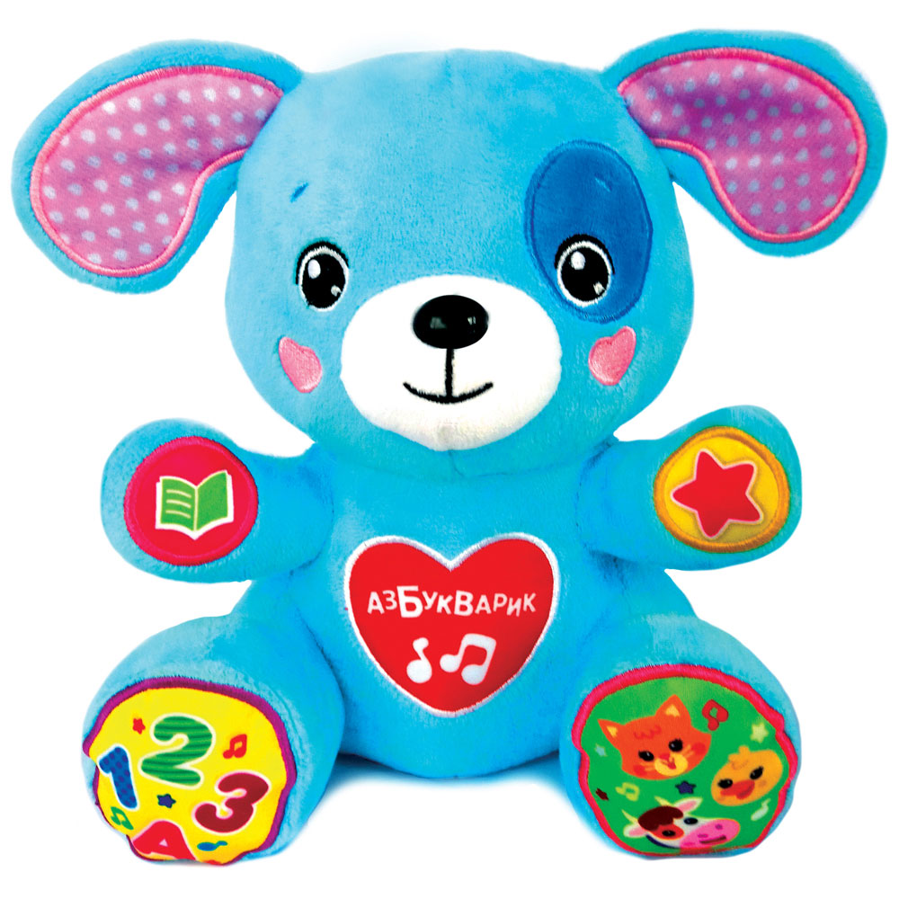 Мягкого щенка так хочется обнять покрепче! Это не просто говорящая плюшевая игрушка – это настоящий друг для малыша. Он знает много сказок и песенок и с удовольствием поделится ими с ребенком! Нажимай на лапки щенка – слушай 6 сказок («Курочка Ряба», «Три медведя», «Солнышко», «Пузырь, соломинка и лапоть», «Репка», «Гав-гав»), 4 обучающие песенки про алфавит, счет, формы и цвета, 6 веселых песенок о зверятах и не только! Все это сопровождается забавными звуками и фразами. А перед сном щенок споет чудесные колыбельные песенки.