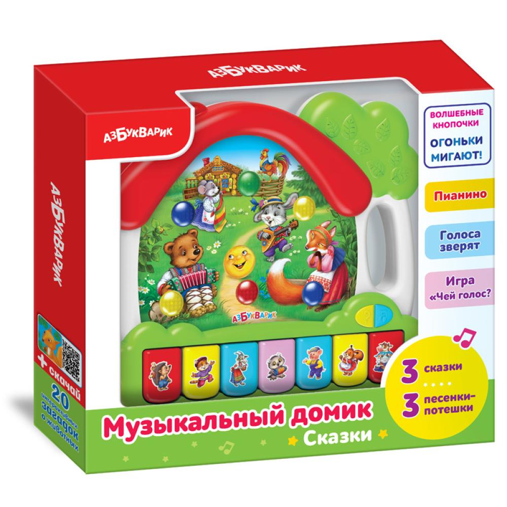Музыкальная игрушка в форме домика с 2-мя режимами: "Песенки, сказки, пианино" и "Звуки".