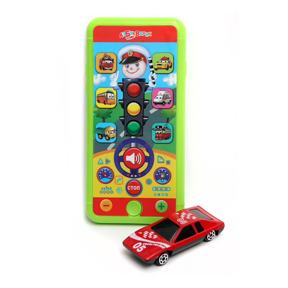 Смартфончик Светофор в комплекте с игрушечной машинкой – отличный подарок для маленьких автолюбителей! Нажимай на кнопочки – знакомься с разными машинами, отвечай на веселые вопросы, отгадывай загадки!