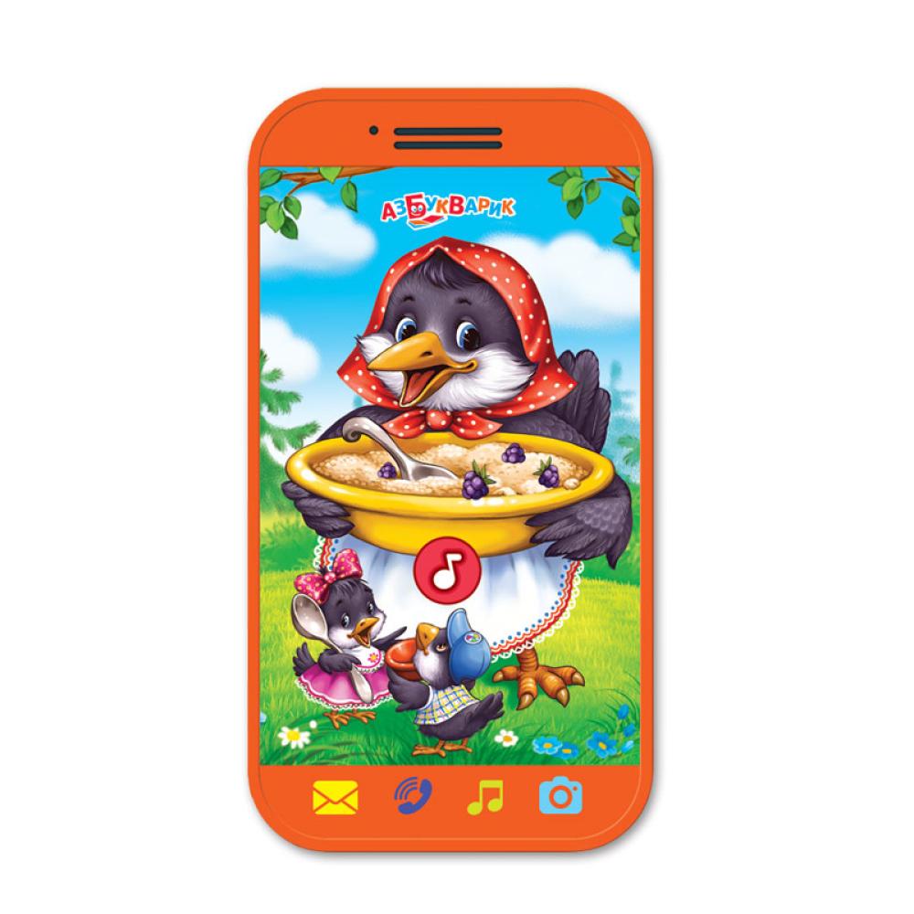 Новый компактный мини-смартфончик так удобно носить с собой! Теперь любимые герои всегда будут рядом и порадуют малыша знакомыми песенками («Сорока-белобока», «Ладушки», «Калинка»), весёлыми мелодиями («Во поле берёза стояла», «Два весёлых гуся», «Частушки Бабок-Ёжек») и забавными звуками.