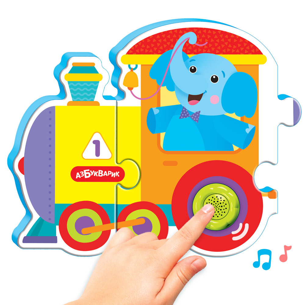 Собирать пазлы под музыку еще интереснее! При нажатии на кнопочку малыш послушает обучающие песенки про алфавит и счет, а также танцевальные мелодии с веселыми звуками.