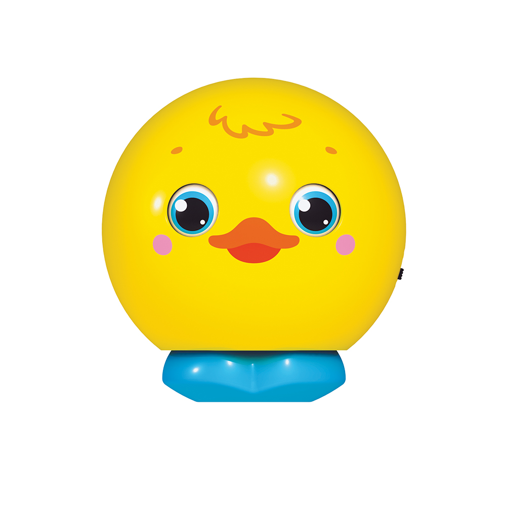 Вот так сюрприз! Музыкальный мячик-зверюшка «2 в 1» – милый утенок. Нажми на него – утенок спрячет ножки, закроет глазки – и превратится в мячик! Покатай его – утенок-мячик будет петь и говорить! Слушай веселые песенки и мелодии («Друзья», «Питомцы», «Это что за чудеса?» и др.), забавные звуки и фразы.