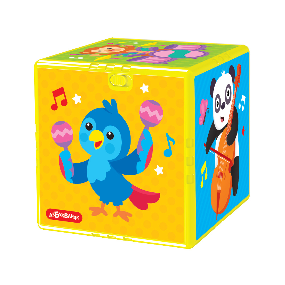 Игрушка представляет собой пластиковый кубик, на гранях которого изображены яркие сюжетные иллюстрации. Кубик уникален тем, что все его грани озвучены. Всего 6 активных граней, поворачивая кубик, малыш сможет послушать 45 песенок, мелодий, стихов и звуков.