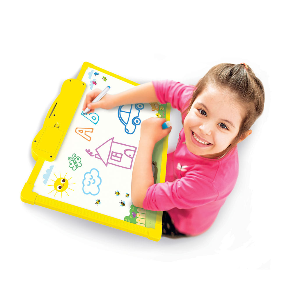 Вторая сторона – «Пиши, рисуй, стирай». Здесь есть где разгуляться детской фантазии! Рисуй любыми цветными фломастерами, пиши цифры и буквы, а потом стирай и рисуй снова (в комплект входит фломастер со специальным ластиком в колпачке).