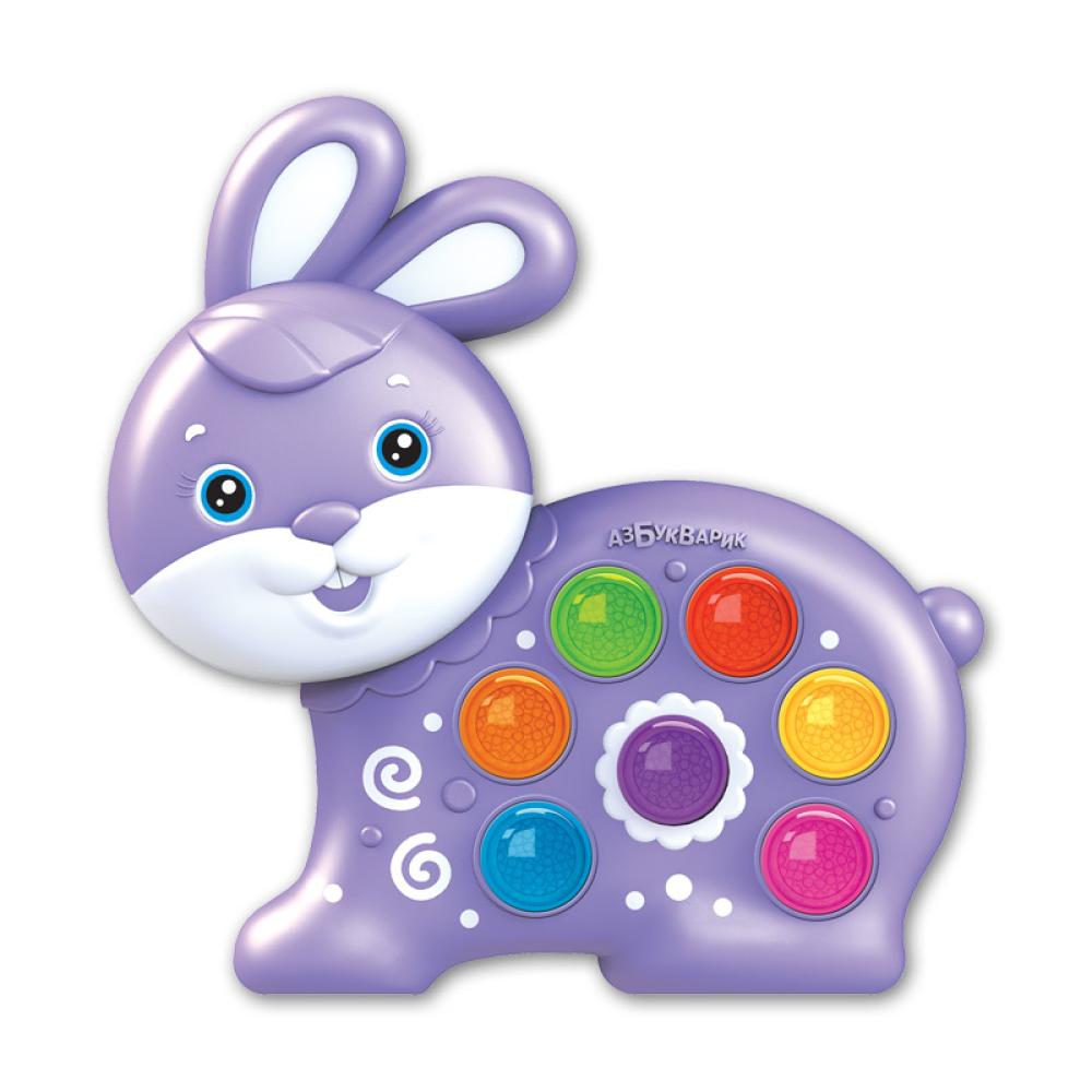 Играя с весёлым Зайчиком, детки будут развивать мелкую моторику и координацию движений, музыкальный слух и чувство ритма, память и фантазию.