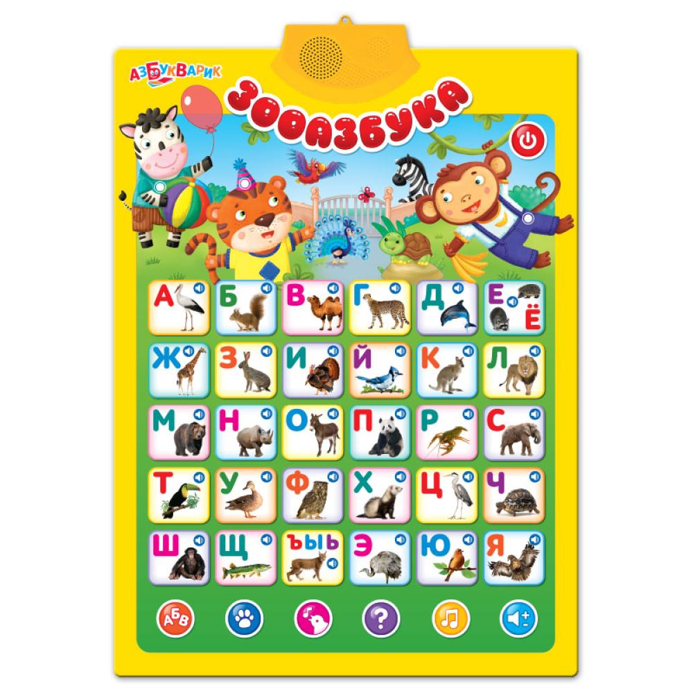 Учить буквы гораздо веселее с новым плакатом от Азбукварика – «Зооазбука»! Здесь животные всего мира встали в алфавитном порядке: А – аист, Д – дельфин, Т – тукан и т.д. Нажимай на картинки – запоминай буквы, знакомься со зверюшками, играй в умные игры («Забавные буквы» и «Чей голос») и слушай любимые песенки: «Чунга-чанга», «Песенка друзей», «По дороге с облаками», «Танец маленьких утят», «Песенка про кузнечика», «Песня Львёнка и Черепахи», «Добрый жук», «Песенка о жирафе», «Улыбка», «Пусть бегут неуклюже».